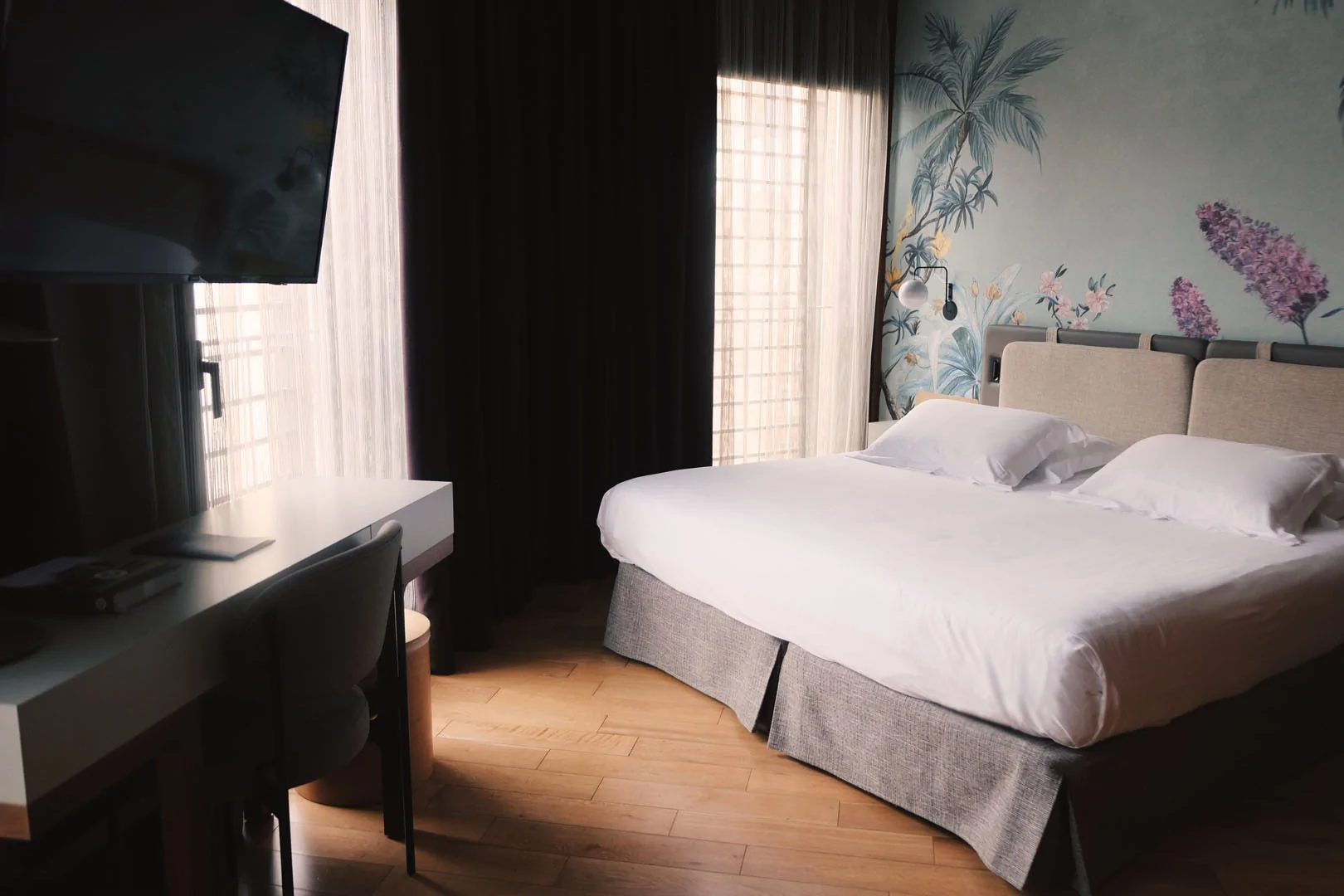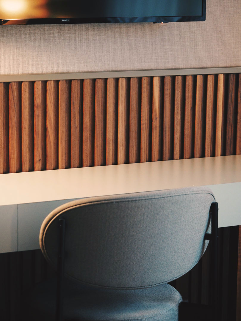 Schallisoliert, geräumig und hell. Unser Premium-Doppelzimmer mit Verbindungstür ist ideal für Familien oder Gruppen. Ein gemeinsamer Raum oder mit Privatsphäre, einfach durch Öffnen oder Schließen einer Tür. Queensize-Bett mit Bettwäsche aus ägyptischer Baumwolle, Smart-TV und Chromecast. Und das alles umgeben von einer edlen Wandverkleidung aus Holz.